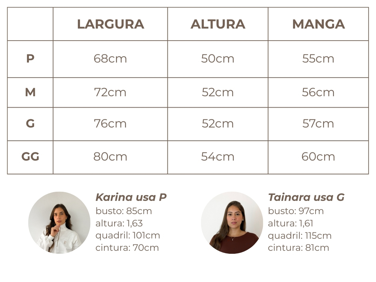 considerar que o tecido possui elastano, então as medidas podem aumentar até 15cm.