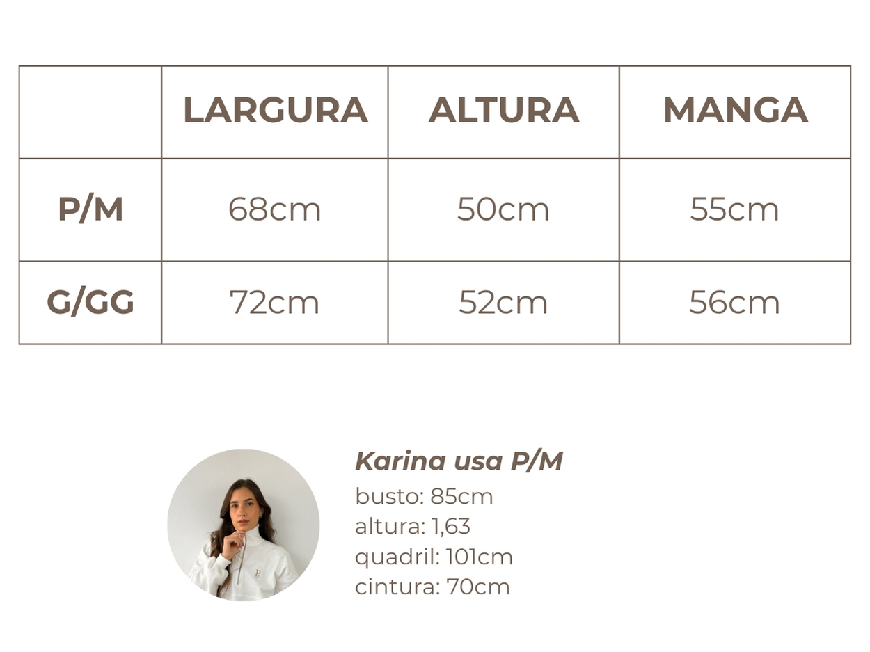O fecho por colchete na parte inferior facilita na hora de vestir. As medidas podem aumentar até 12 cm na largura em relação à tabela, graças à elasticidade do tecido, proporcionando um encaixe confortável em diferentes tipos de corpo.