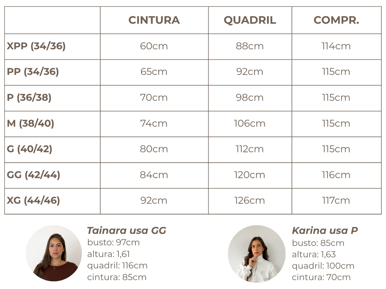 A calça perfeita pra facilitar seu dia a dia: veste super bem, é estilosa, confortável e já virou queridinha de quem comprou. Tem modelagem normal, então você pode apostar no seu tamanho de sempre. Possui forro, zíper e botão no entremeio, bolsos laterais e passantes para cinto. É feita em viscose sarjada, um tecido mais encorpado que garante ótimo caimento. Por ser 100% viscose, pode encolher de 3% a 5% no comprimento após a primeira lavagem, então, se for ajustar a barra, o ideal é lavar antes.