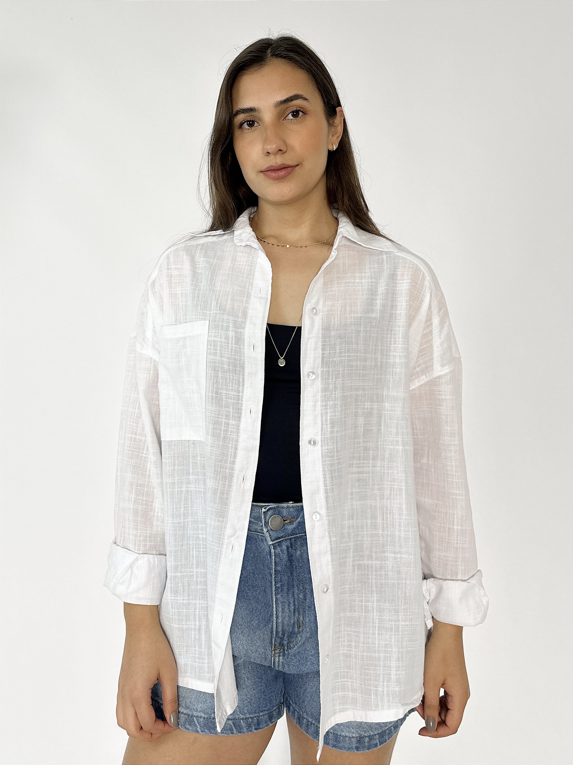 Nossa Camisa Oversized é o must-have do guarda-roupa de qualquer mulher! Feita em um tecido leve e fluido, ela é perfeita para os dias quentes. O tecido dela não apenas mantém você fresco, mas também confere um toque natural e despojado para o look. Pode ser usada em muuuitas ocasiões, desde um jantar romântico até um brunch com as amigas ou até mesmo para trabalhar em um escritório. Vem Agarrar a sua!