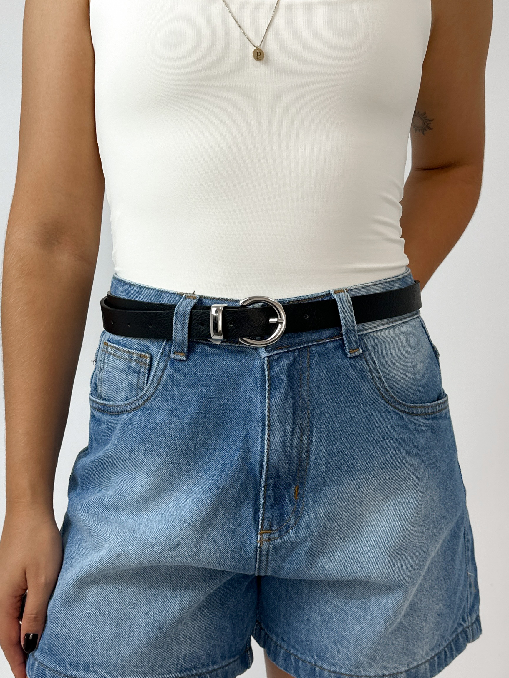 Cinto em material resistente, com fivela metálica redonda que traz um toque moderno ao look. O design minimalista combina facilmente com jeans, alfaiataria ou peças casuais. Ideal para marcar a cintura e finalizar produções do dia a dia com estilo e praticidade.