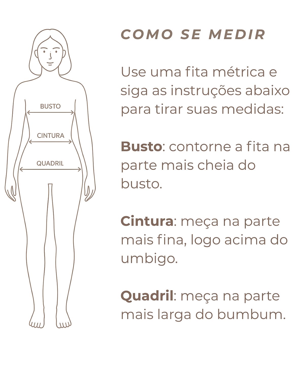 Aqui, o objetivo não é mostrar uma tabela padrão, mas sim te ajudar a entender como tirar suas próprias medidas e comparar com as informações disponíveis na página de cada produto.