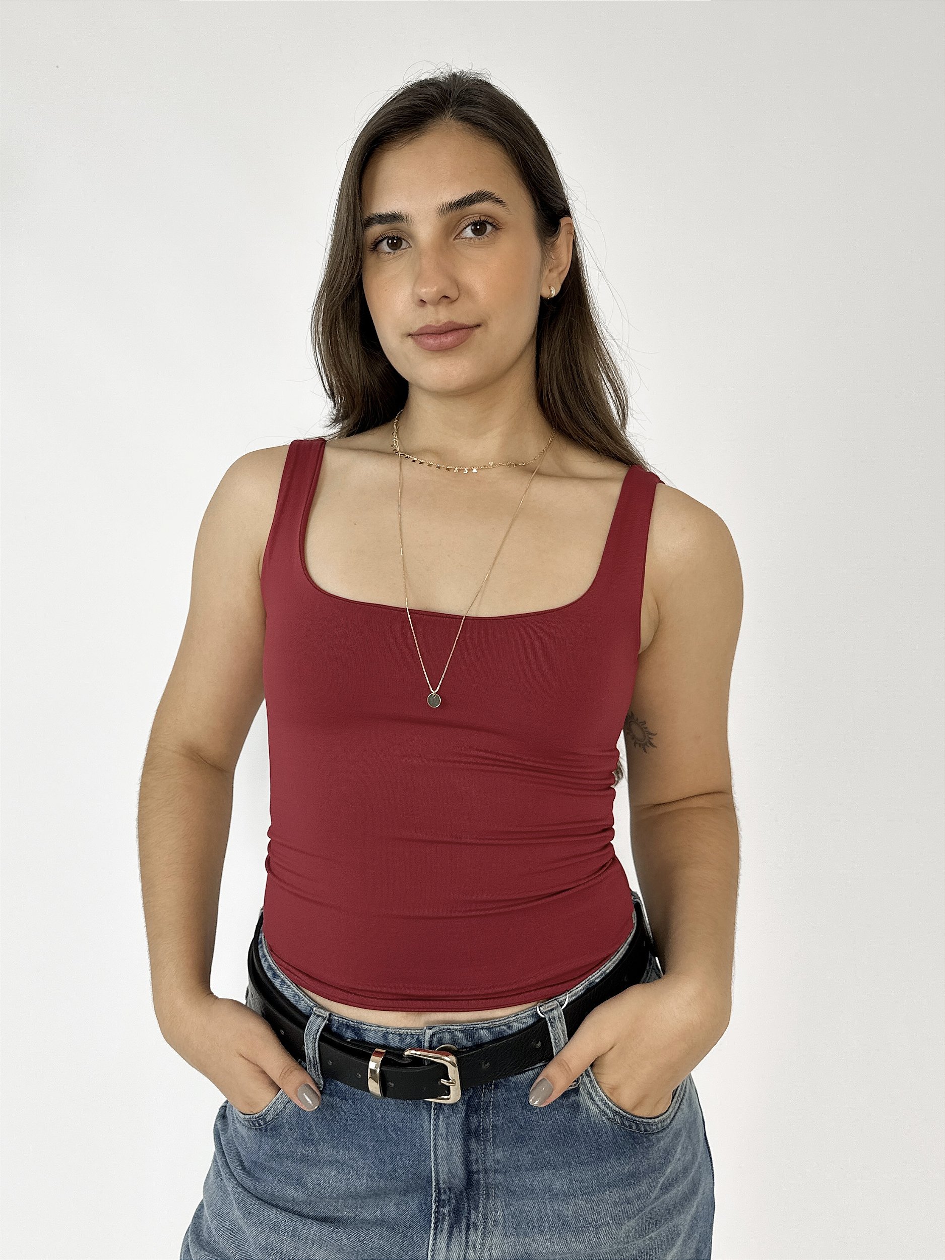 A regata que une estilo, conforto e praticidade. Feita em poliamida com elastano, tem ótimo caimento e liberdade total nos movimentos. O decote quadrado valoriza o busto, e o tecido duplo garante sustentação sem precisar de sutiã. Ideal pra quem quer se sentir bem e ainda arrasar no look.